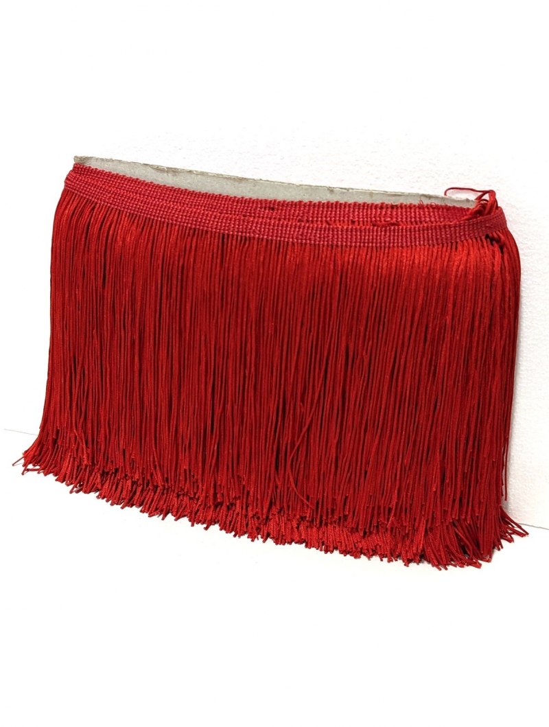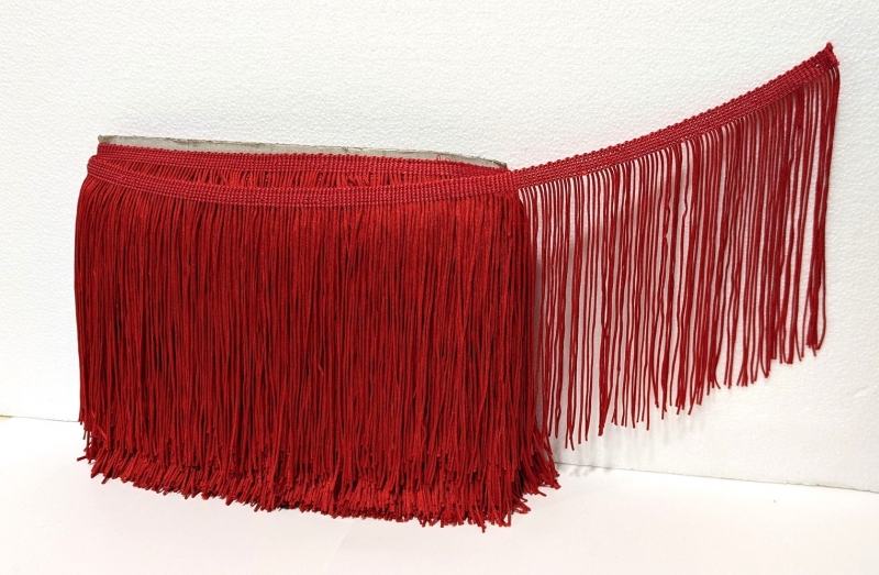 • Frędzle na taśmie czerwone wiskozowe taneczne 15cm/0,5m