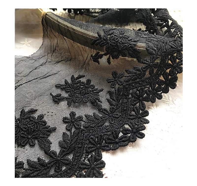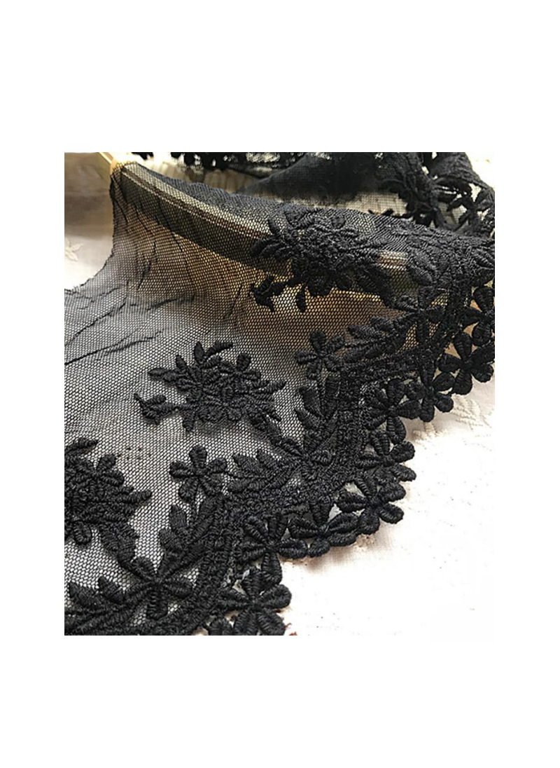 • Bawełniany haft na tiulu czarny 13cm/0,5m.