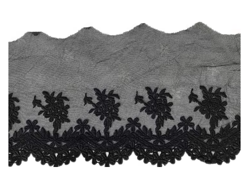 Bawełniany haft na tiulu czarny 13cm/0,5m. -