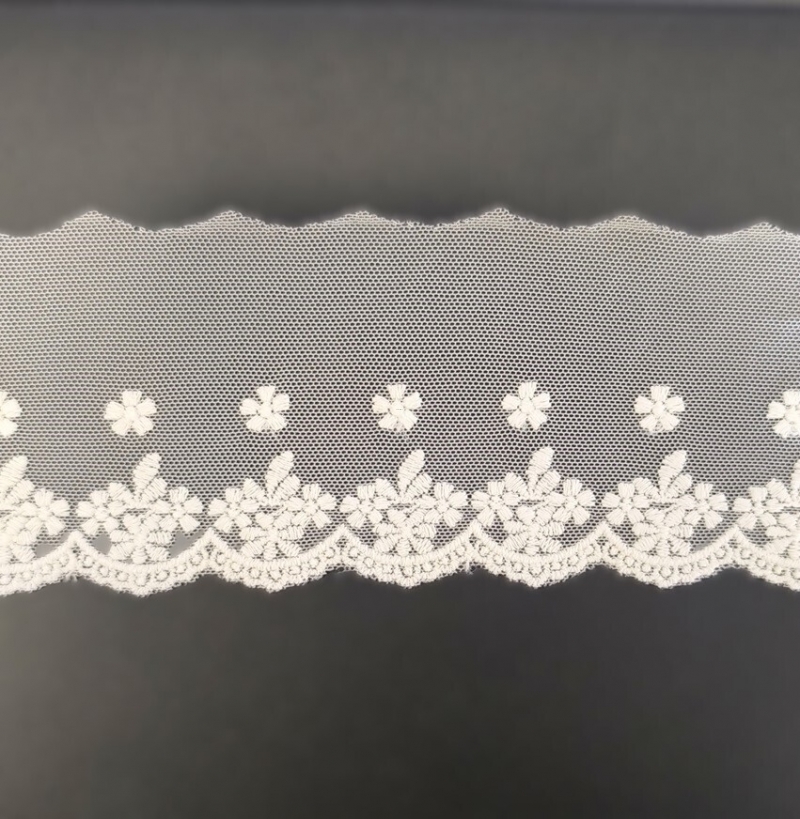 • Bawełniany haft na tiulu 6cm/1m.