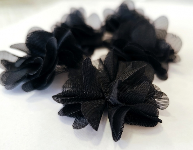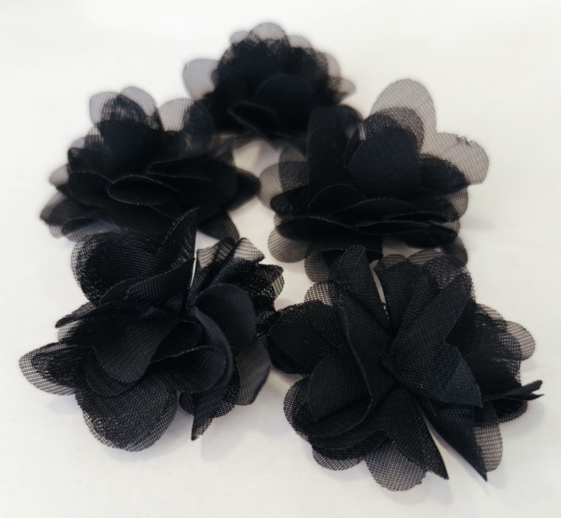 Kwiatki szyfonowe czarne 50mm/6szt.