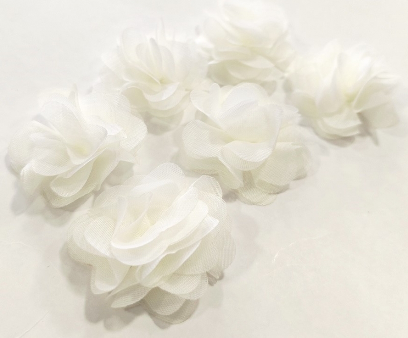 Kwiatki szyfonowe białe 50mm/6szt. - AKCESORIA I DODATKI DO ODZIEŻY