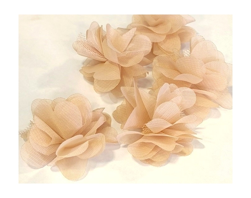 Kwiatki szyfonowe beżowe/nude 50mm/6szt.