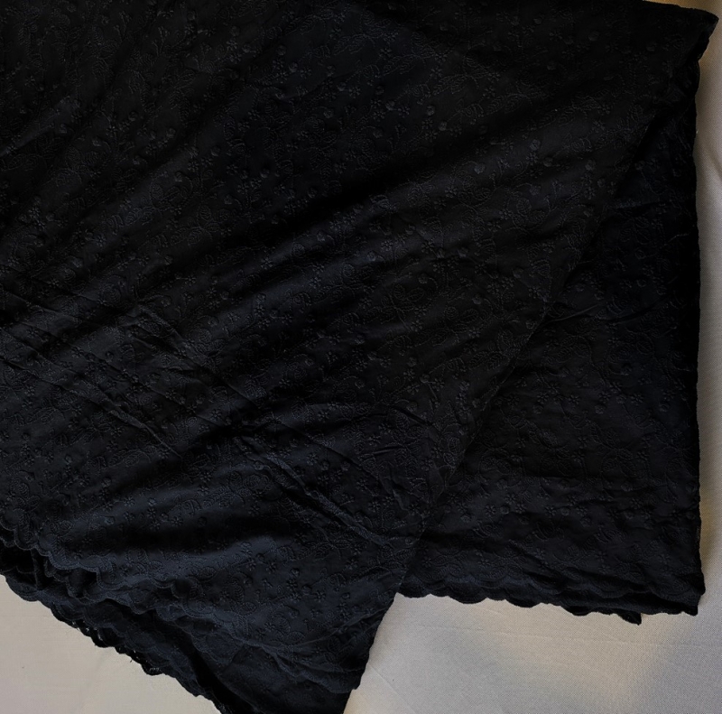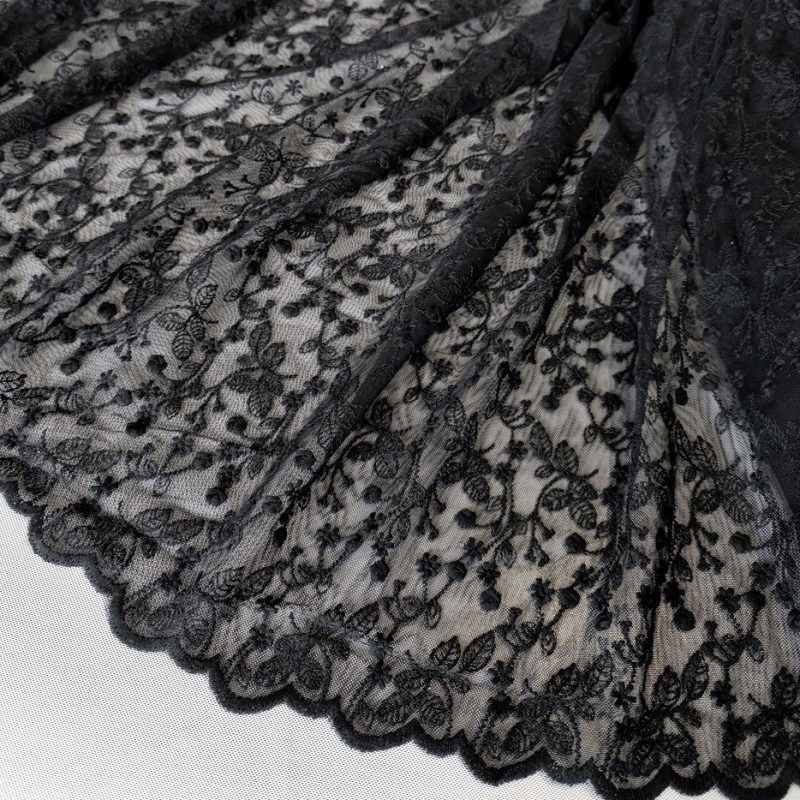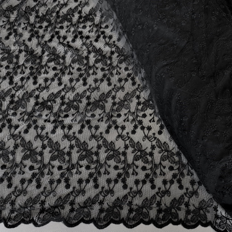 Bawełniany haft na tiulu czarny 130cm/0,5m.
