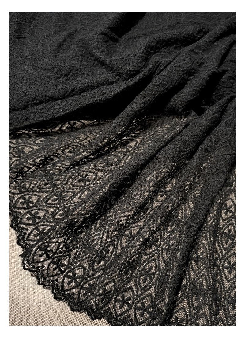 Bawełniany haft na tiulu czarny 130cm/0,5m.