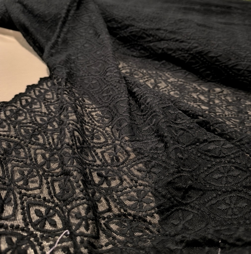 • Bawełniany haft na tiulu czarny 130cm/0,5m.