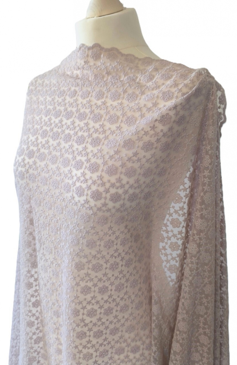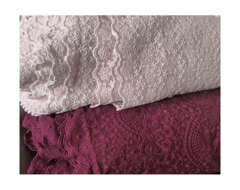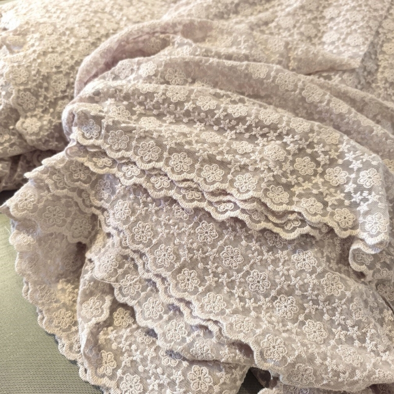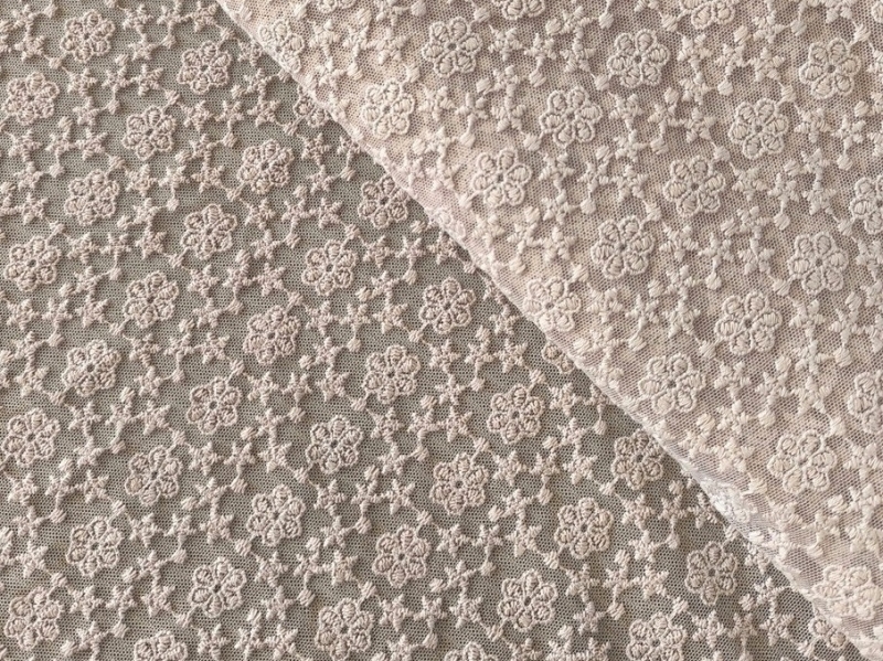 Bawełniany haft na tiulu róż/fiolet 130cm/0,5m. - KORONKI