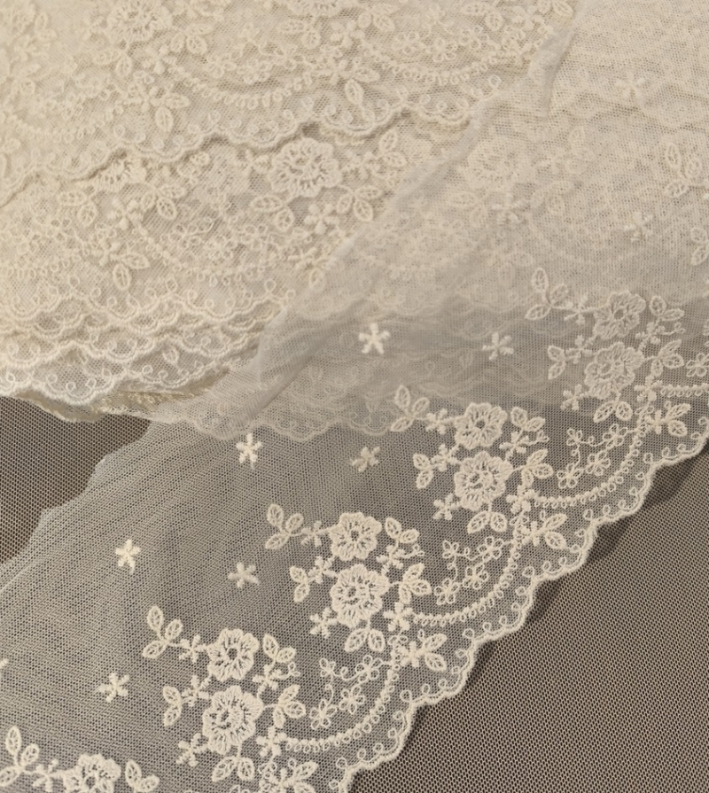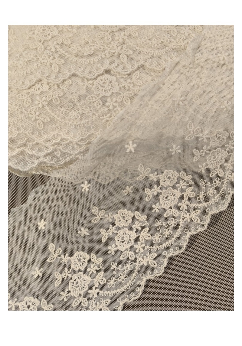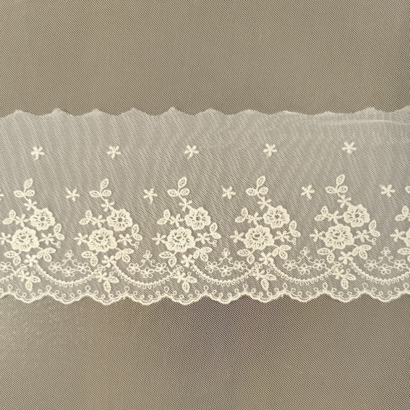 • Bawełniany haft na tiulu beżowy 13cm/1m.