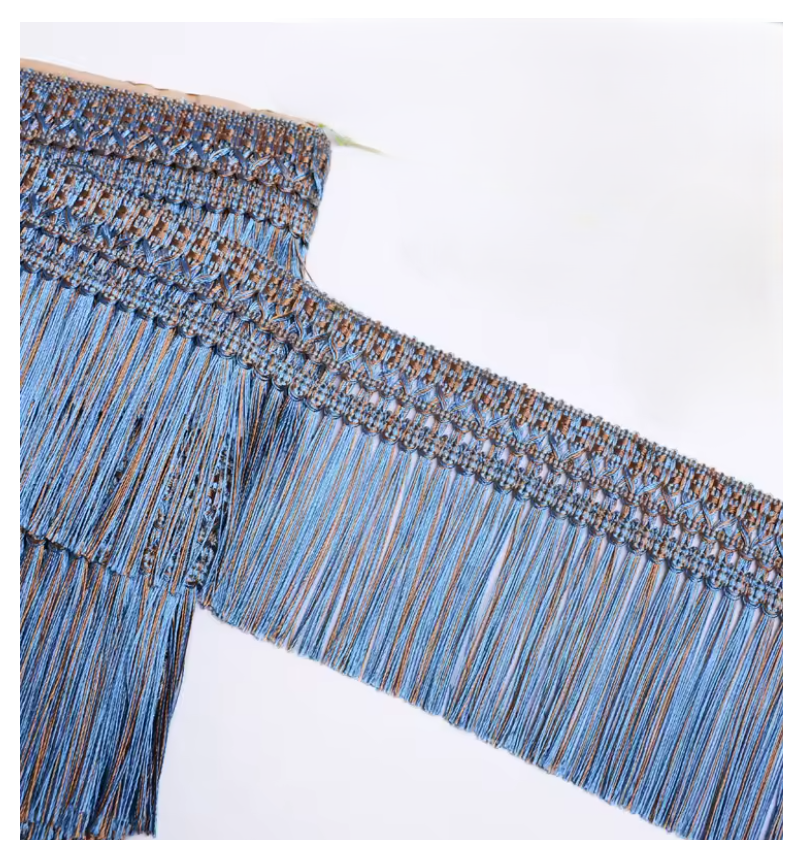 Frędzle na taśmie niebiesko-beżowe 12cm/0,5m.