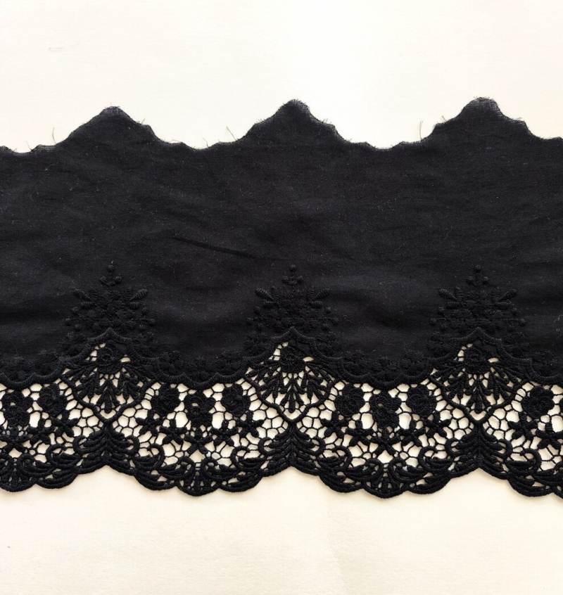Bawełniany haft na bawełnie w kolorze czarnym. Szerokość całkowita 20cm