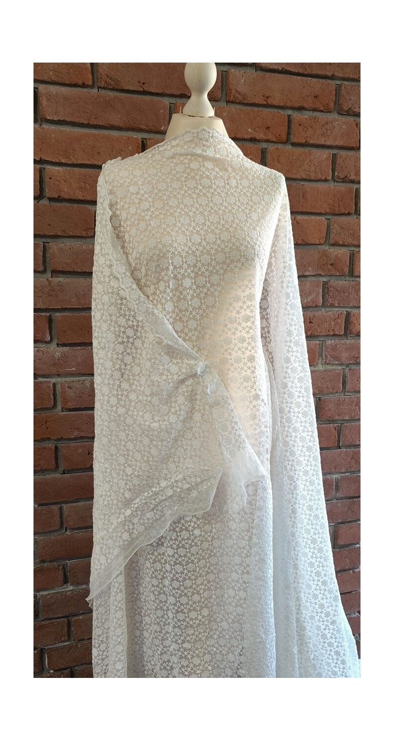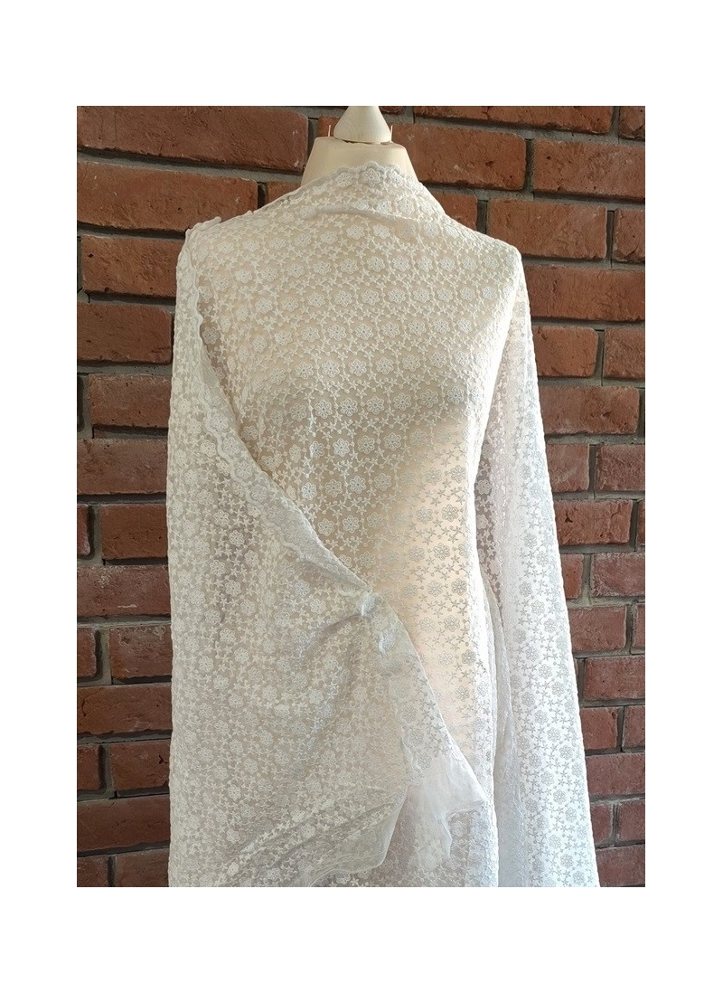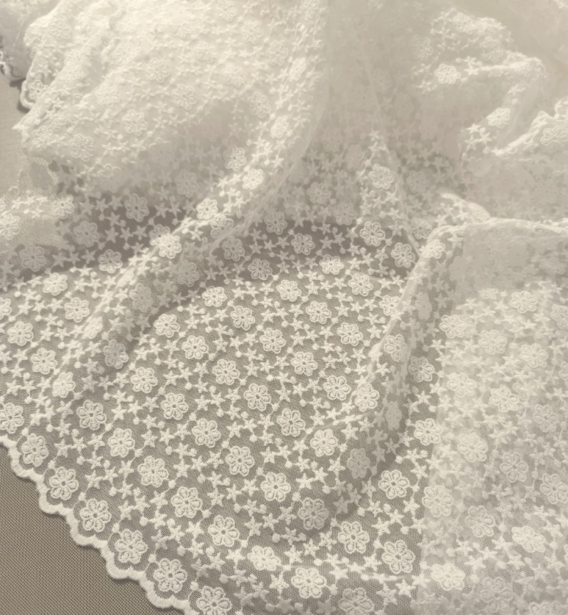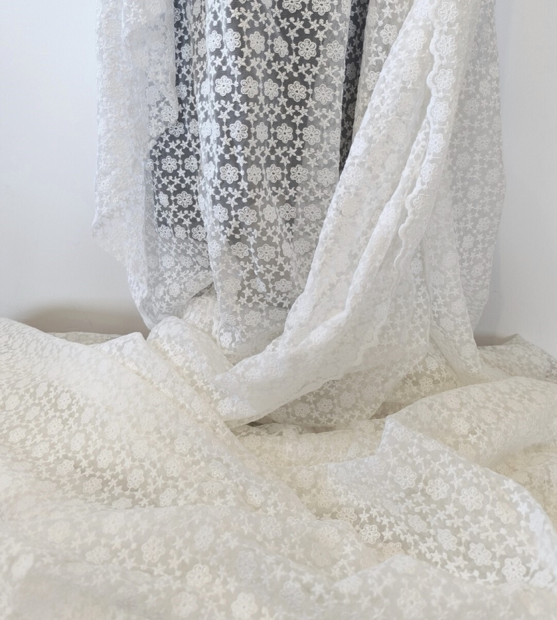 Bawełniany haft na tiulu ecru 130cm/0,5m.